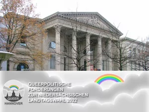 - Queerpolitische Forderungen zur Niedersächsischen Landtagswahl 2022Das Queere Netzwerk Niedersachsen hat in einer Stellungnahme Forderungen zur…